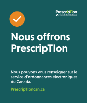 Ajoutez l'insigne « Ce système de gestion de pharmacie comprend le service PrescripTIonMC » sur votre site Web et reliez l'insigne au site www.prescriptioncan.ca pour diriger vos clients vers l'information au sujet du service.